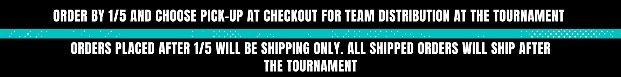 - Orders placed after January 5th will be shipped only and will not be available for tournament pick-up.